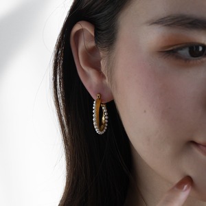 ゴールドカラーのフープに並んだフェイクパールが、上品で華やかな印象を与えます。