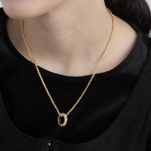 繊細なロープチェーンに、キュービックジルコニアをセッティングしたペンダントネックレス。