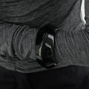 シャープな印象を引き立てる、ブラックのアクリルバングル。