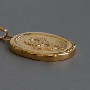 アンティークなコイン風デザインに、可憐なフラワーの彫刻を施した印象的なペンダント。