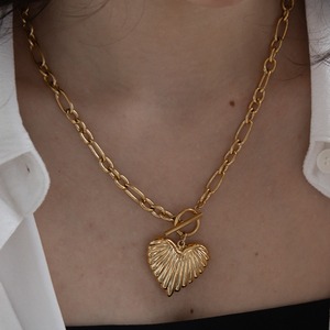 流れるようなラインが美しいハートに、程よい存在感のあるチェーンを合わせ、