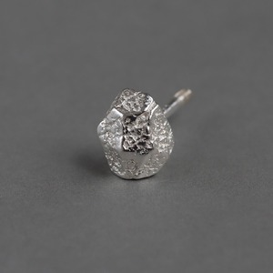 小さな丸玉と、表面にテクスチャーを施したデザインキャッチが特徴で、シンプルながら個性のある印象に。
