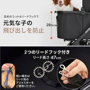 キャリー内部には 飛び出し防止リード を装備し、活発なペットでも安全に過ごせるよう配慮しています。