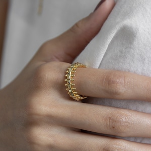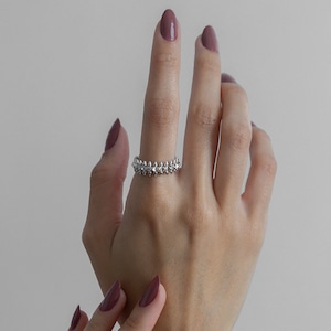 存在感のある立体的なフォルムが指元を印象的に見せ、