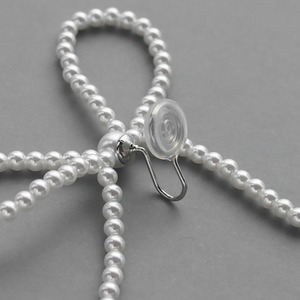 本商品は、パールを透明なテグス(紐)で編み込んだデザインのため、個体差によりリボン部分の形や向きに多少の違いがございます。