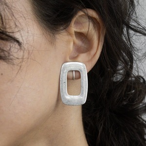 【ネコポス便】イヤリング 大ぶり マット スクエア ニュアンス 四角 ゴールド シルバー アンティーク調 艶消し 2497
