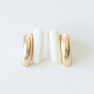 ヴィンテージ風でマットなゴールドがコーデに上品さをプラス。コロンとしたシルエットで主張しすぎない大きさでありながらも、顔まわりを華やげてくれます。