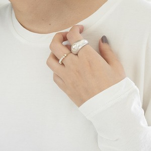 リングのボリュームが左右と異なるデザイン。手元でひと際存在感を放ち、周囲の視線を引きつけます。