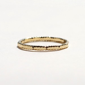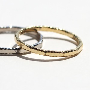 華奢なリングの表面をハンマーで叩くことにより、サイドに凸凹を付け柔らかい印象のデザインに。シンプルながらもさりげないアクセントを与えます。