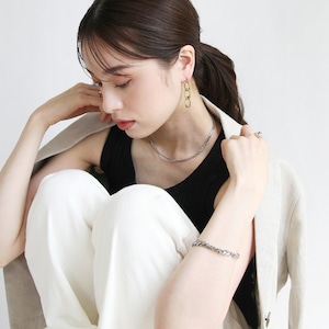 ボリュームのあるスクエアチェーンが揺れ、着こなしのポイントになるアイテム。