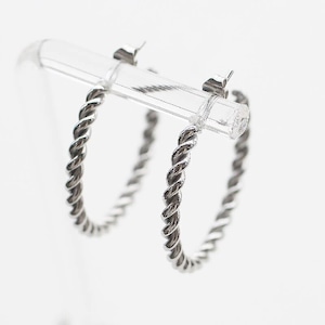 シンプルな中に洗練されたひねりを加えた、大人の女性のためのツイストフープピアス。