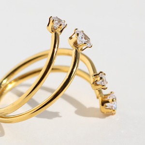 大小異なるジルコニアが指に沿い、らせん状のフォルムが美しいリングです。