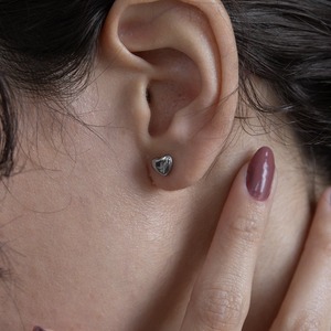 ミニマムなハートモチーフが、小さく華奢ながらも耳元に存在感を放ちます。