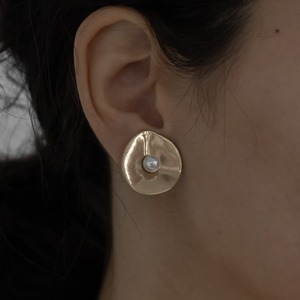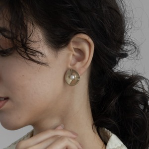 つやを抑えたマットな質感のプレートが、耳元に落ち着いた存在感を添えるイヤリングです。