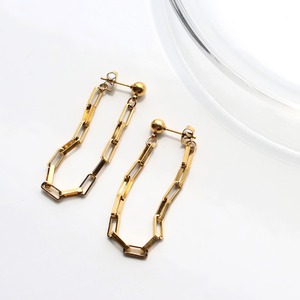【ネコポス便送料無料】ピアス ブロックチェーンピアス 金属アレルギー サージカルステンレス つけっぱなし 揺れる ロング 金アレ対応 レディース ゴールド カジュアル ゴールドピアス ロングピアス 18K 2103