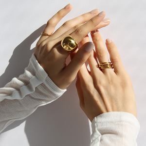 滑らかな質感で存在感のあるシルエットが、印象的なリング。