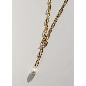 ナチュラル一粒淡水パールとオーバルチェーンを合わせた着脱簡単なマンテルの留め具のネックレス。