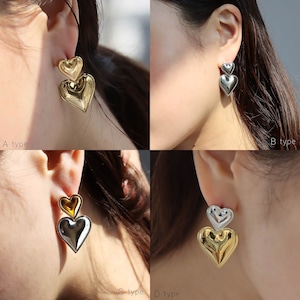 NEWカラー登場【ネコポス便】ピアス ダブルハートピアス ハート ピアス 18k 金属アレルギー サージカルステンレス つけっぱなし 2237