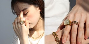 キレイめにもカジュアルにも楽しみたいそんなデザインリングです。