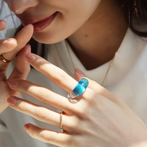 【ネコポス便送料無料】リング 指輪 ニュアンスラインクリアカラーリング ニュアンス ガラス 模様 ブルー ライトブルー イエロー グリーン ピンク レディース 8号 9号 2279
