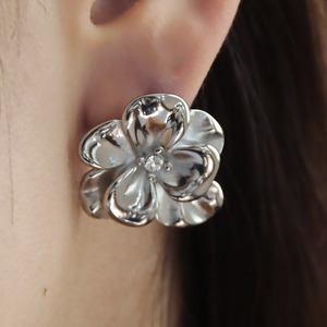 リアル感のある花びらの中心には一粒のビジューをセットし、顔周りを華やかな印象に!