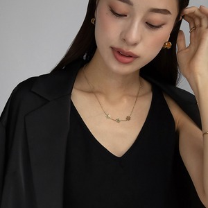メタルフラワーとドットチェーンが主張しすぎず、肌に馴染むような軽い着け心地で、